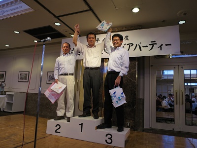 今年はチームと個人の1位~3位の他に抽選で指定された順位の人が貰える運試し賞も実施されました。くじ引きで何位の人が貰えるかを確定した後に商品もその3人でくじ引きを行うと言うまさに運試しの賞。3人ともいい笑顔です。