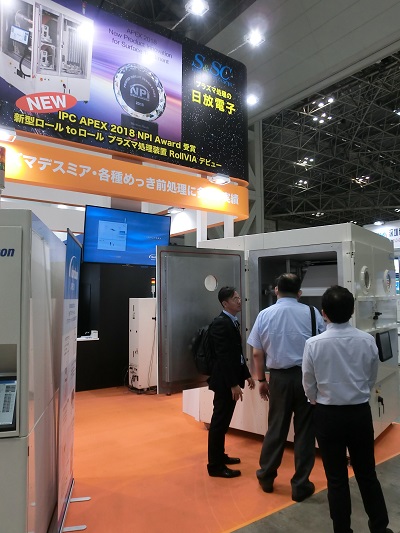 去る6月6日から8日の三日間、東京ビッグサイトで開催された第48回国際電子回路産業展 JPCA SHOW 2018に出展致しました。今回は小間を拡大し4小間での出展となり、大型プラズマ処理装置を2台展示致しました。