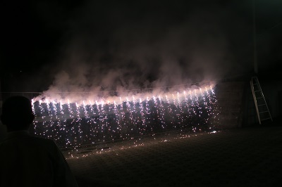たくさんの噴出花火によっていよいよ花火大会が開幕です。