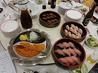 おなかも膨れてきたころ、余興としてテーブル対抗のクイズが始まりました。